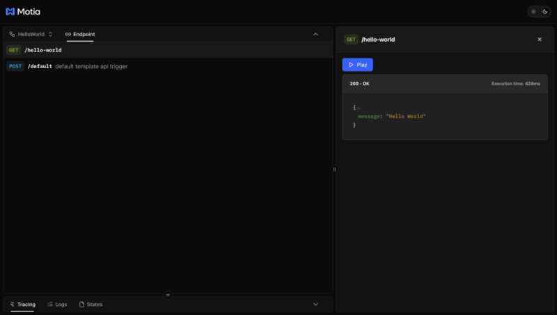 MotiaのGUI(Motia Workbench)は、このように実装されたワークフローを可視化するためのツールということです。